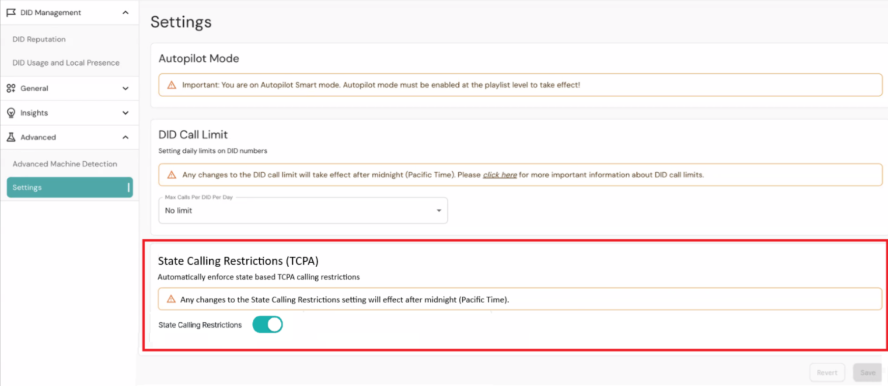 After enabling the toggle, Readymode will adhere to the restrictions set out in the TCPA. Readymode resets the daily calling window at 12:00 AM Pacific Time (PT). This means the system will begin enforcing the calling restrictions for the new day based on this time, regardless of your local time zone. Check your local time to understand when the daily restrictions are enforced locally.